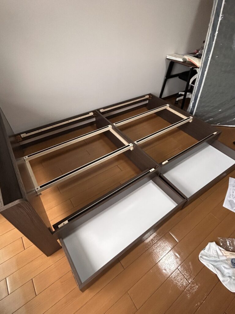 浜松市中央区丸塚町のA様邸にて、Amazonで購入された【タンスのゲン】の**収納付きセミダブルベッド(引き出しタイプ)**の組立てをご依頼いただきました。