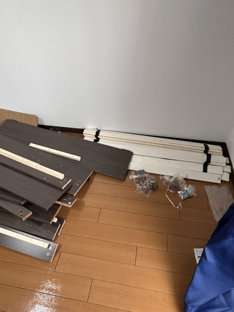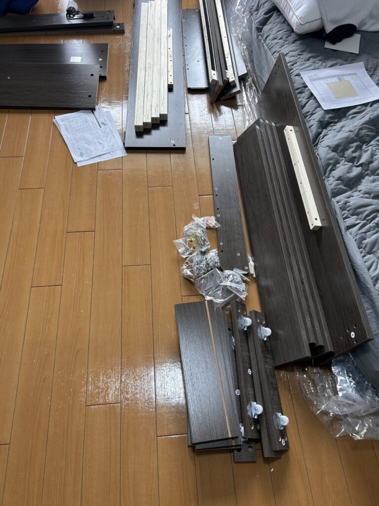 収納付きベッドはパーツの点数が多く、開梱した時点で気持ちが折れやすい家具です。