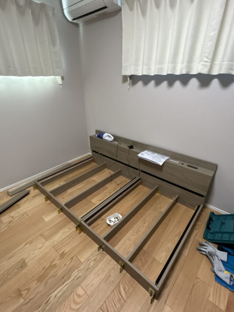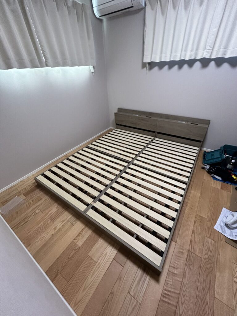 牧之原市のY様邸にて、RASIK 「Famite」すのこタイプのキングサイズベッド(S+SS) の組立てをご依頼いただきました。
